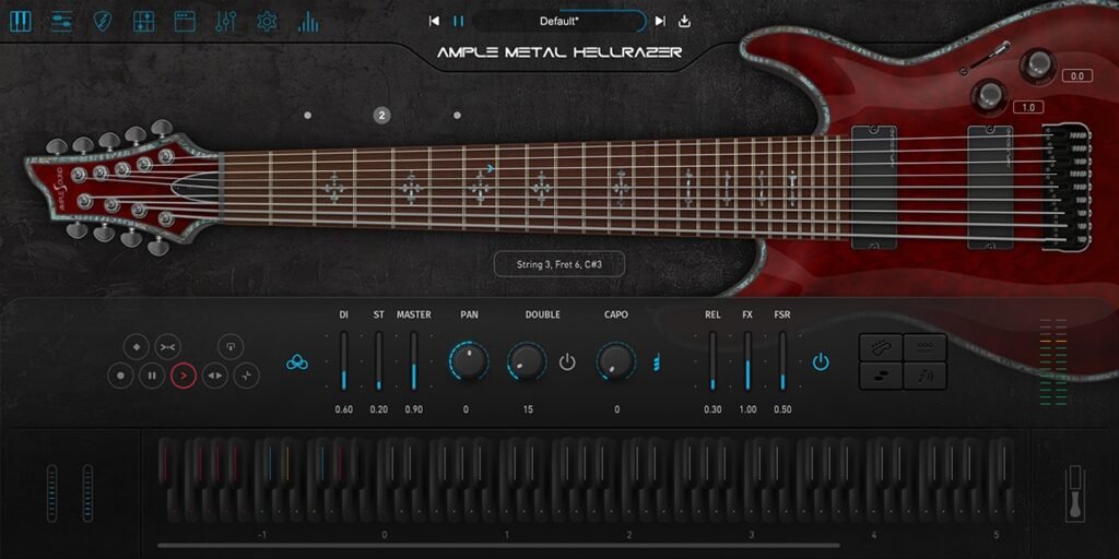 Ample Metal Hellrazer is a virtual 9-string electric guitar based on samples of a Schecter Hellraiser. Because of its low tuning (#C, #F, B, E, A, D, G, B, E) this guitar is perfect for Metalcore, Progressive Metal, Djent and other Heavy Styles.