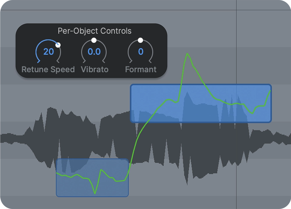 Auto Mode offers effortless real-time pitch correction, while Graph Mode provides precise hands-on pitch correction in a streamlined manner. Easily edit notes with your mouse and adjust the retune speed, vibrato, and formant note by note.