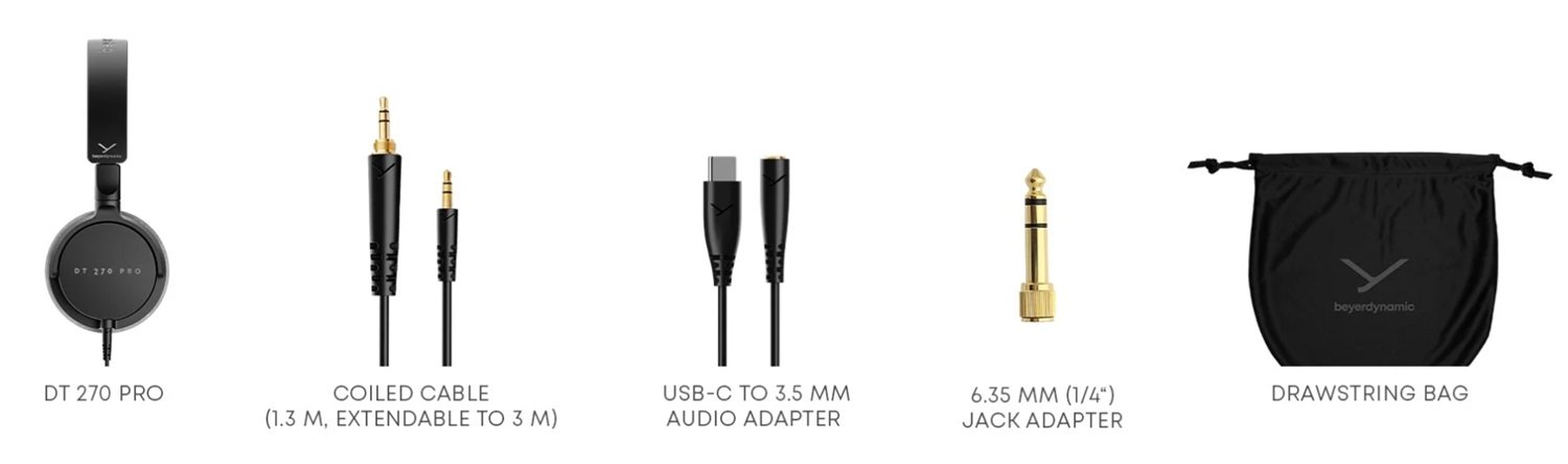 The detachable cable plugs into either the left or right ear cup—whichever suits your setup best. It also comes with a USB-C to 3.5 mm adapter, making it easy to connect directly to modern mobile devices. Whether you’re in the studio or on the go, the DT 270 PRO adapts to your workflow.