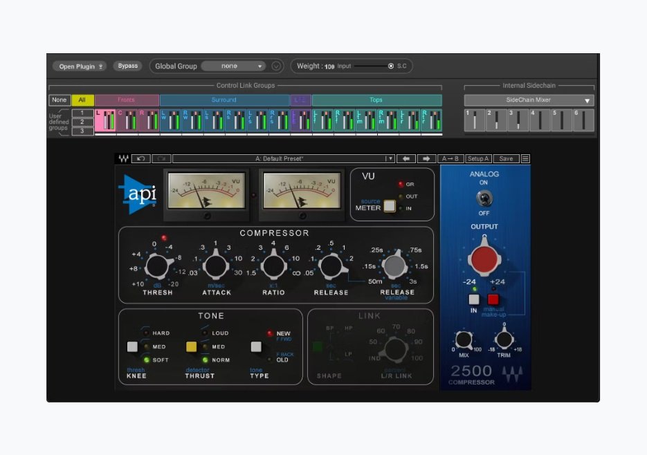 In the studio: Solve the bus processing problem when mixing music for ATMOS and other immersive formats. Now you can create immersive bus processing setups in multichannel / object-based mixes, using your favorite VST3 plugins—by Waves or other brands—complete with a shared internal sidechain system for mix-wide dynamics processing.