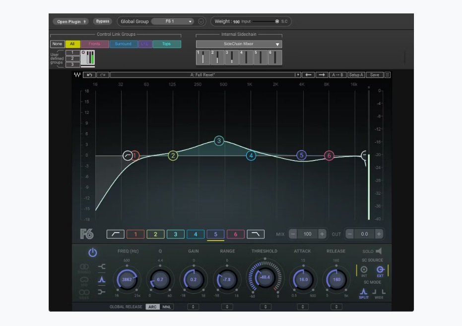 Immersive Wrapper opens the mono plugin across all the channels in the multichannel track, in a ‘multi-mono’ configuration. All the mono instances of the plugin across the beds and objects can be control-linked to make them work as a single plugin. Control-linking is flexible: you can link and unlink specific groups such as surrounds or tops, and preserve relative control positions for maximum control and precision—all with a single click.