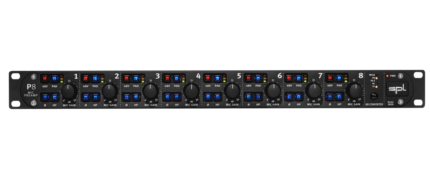 P8 is equipped with eight identically designed microphone preamplifers. All eight preamps have a discrete design – without ICs, made of individual transistors. This is typical for absolute high-end preamplifers and is one of the main reasons for the outstanding sound.
