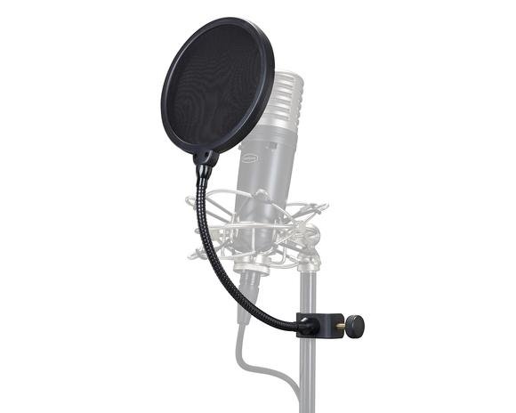 - Dual layer 4.75″ nylon mesh screen reduces vocal popping (“P-Pops”) and sibilance