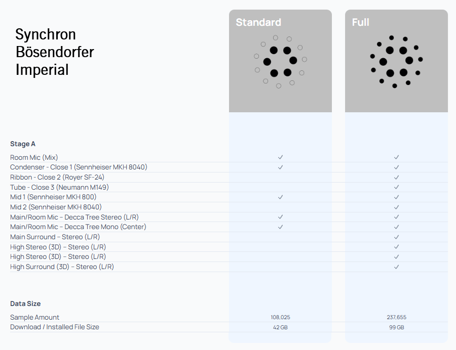 The Bösendorfer Imperial is an instrument that can only be described in superlatives. One look at its imposing construction and unique features as well as one listen to its richly resonant tone make it clear why. Its full, sonorous sound brims with the signature timbre that makes Bösendorfer a top choice for countless artists. Legendary composers like Bela Bartók, Claude Debussy, and Maurice Ravel were among the early admirers and adopters when the Bösendorfer Concert Grand 290 Imperial first debuted. Today, it still represents the apex of the famed Austrian piano manufacturer’s precious heritage, and now we bring it to your studio. One of its tonal secrets lies in its massive soundboard and extended range with additional bass notes making this grand piano sound impressively imperial. Explore the room filling sound and the versatile tonal possibilities of this special piano with this expertly captured representation of this masterpiece, recorded under ideal acoustic circumstances at Vienna Synchron Stage.