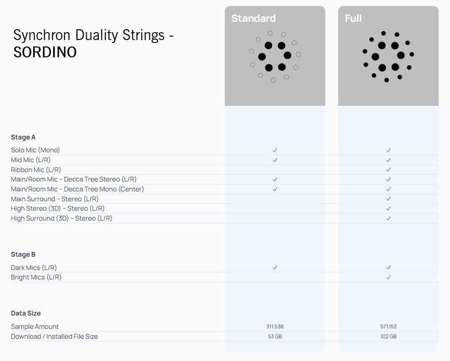 As in the first Duality Strings installment, the large and the small ensemble were sampled at once, playing in separate rooms, with the conductor on the podium in Stage A also directing the ensemble in Stage B via video monitors. While the mic setup in Stage A delivers a broad string ensemble sound, the smaller ensemble in Stage B was recorded closer with two different sets of microphones, offering bright and dark sounding variants. This enables you to customize your own string sound organically and effortlessly within the Synchron Player. Of course you can also rely on the expertly crafted mixer presets, ranging from close and classic to wide, distant, lush and more.