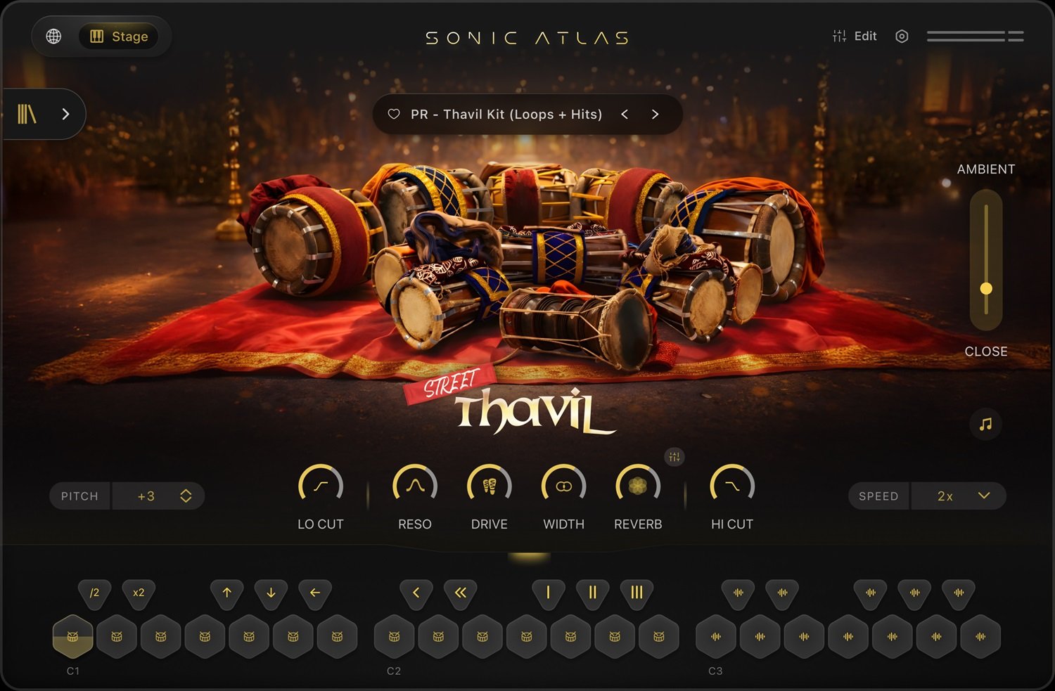 The Thavil Kit captures a traditional South Indian percussion ensemble, central to temple rituals and classical performances. Known for its deep, resonant low-end, sharp rhythmic accents, and commanding tonal presence, Thavil provides a powerful rhythmic foundation that anchors ensembles with clarity and authority.