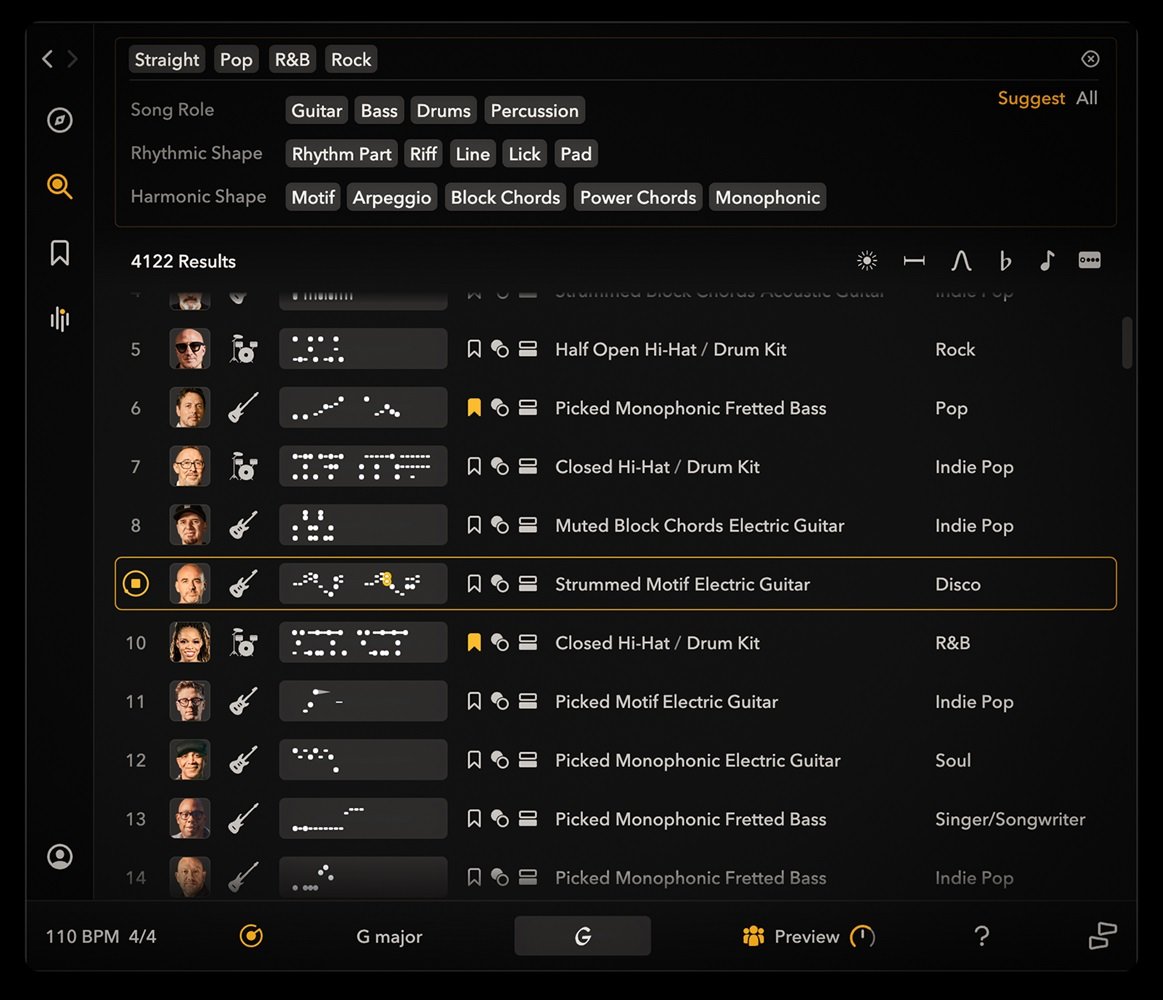 Tonalic reshapes real studio recordings from world-class musicians into adaptive musical performances that follow your song, adapting chords, tempo, groove, natural transitions and voice-leading with the musical intelligence of a real player.