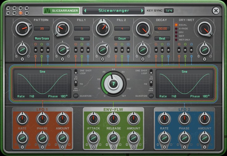 Each of these five knobs can be tied to the main-screen knob, which is what gives them the magic! If you want some hands-off automation as well, each slot has two LFOs/step sequencers and an envelope follower that can be used to modulate. These can be assigned to any effect parameter.