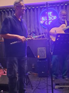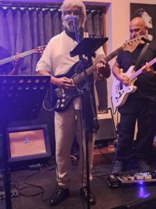 Set two commenced just after 11.15pm with selections that included “I Shot The Sheriff” (Bob Marley), a guitar-based “Light My Fire” (Doors), and “She Came In Through The Bathroom Window” (Beatles). A welcome return to blues occurred thereafter through a rendition of the Ray Charles popularised “I Don’t Need No Doctor”, and Robert Johnson’s “Sweet Home Chicago”, followed by a brief drum solo by Adrian before merging into Johnson’s other blues classic, “Crossroads”.